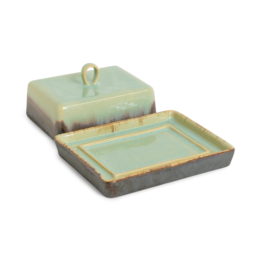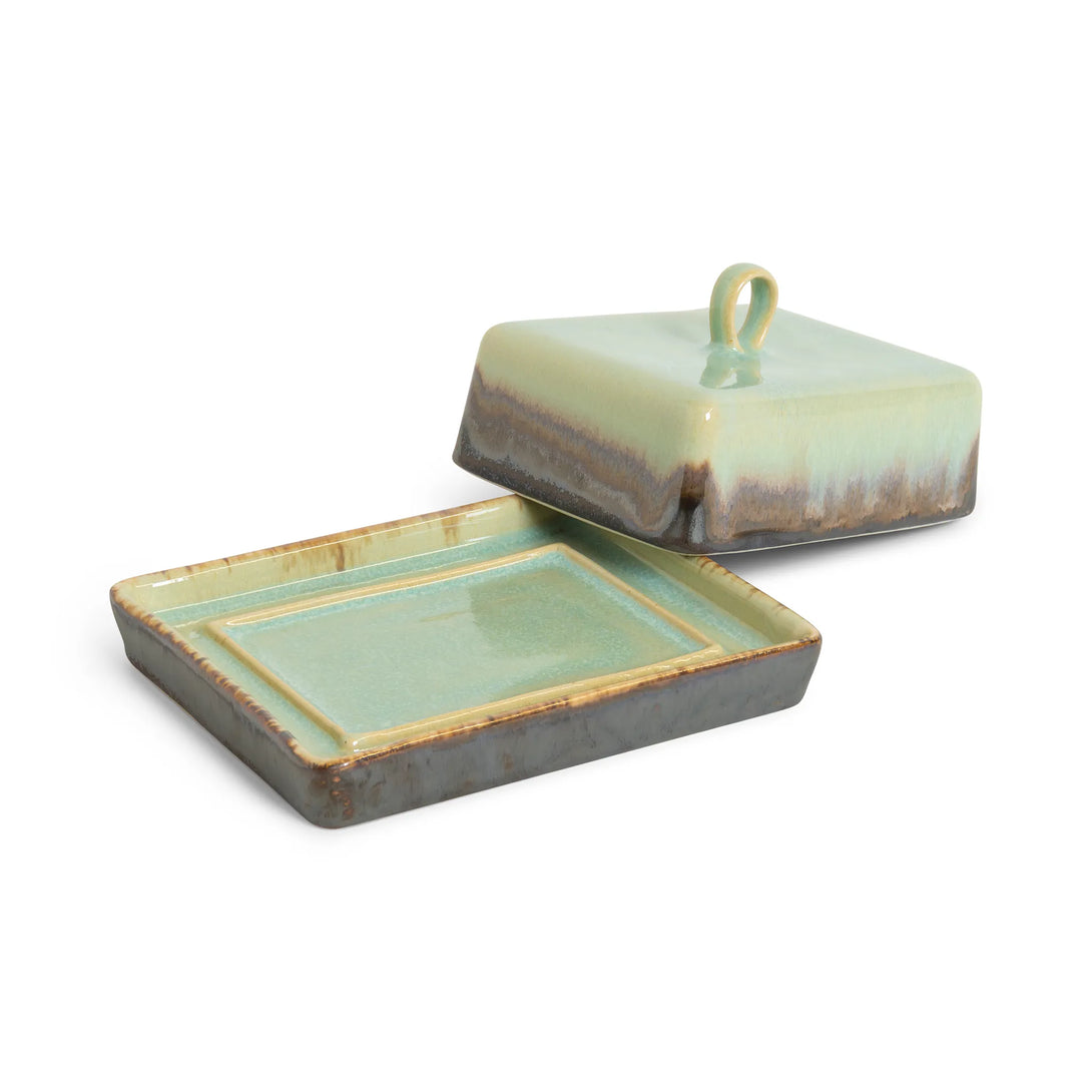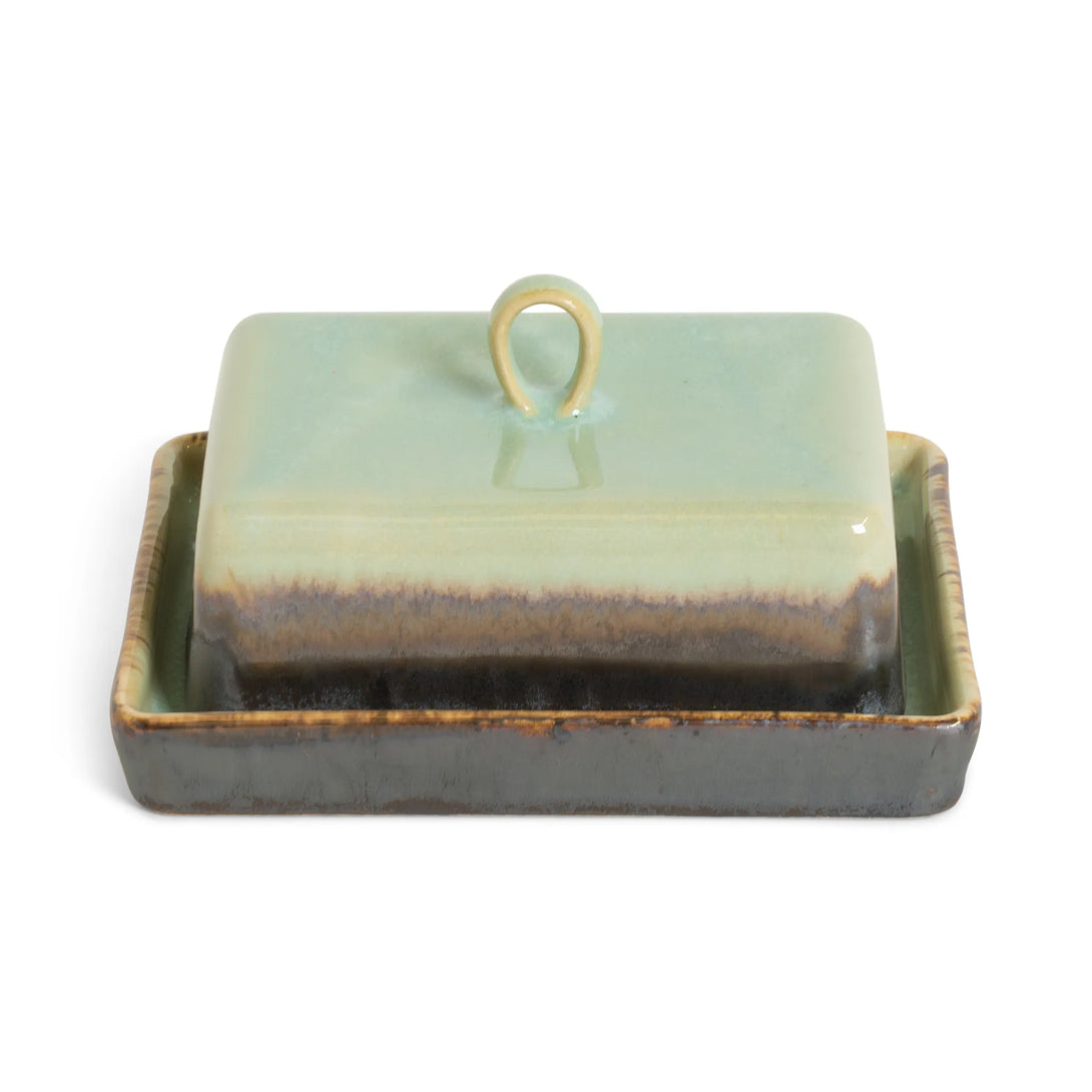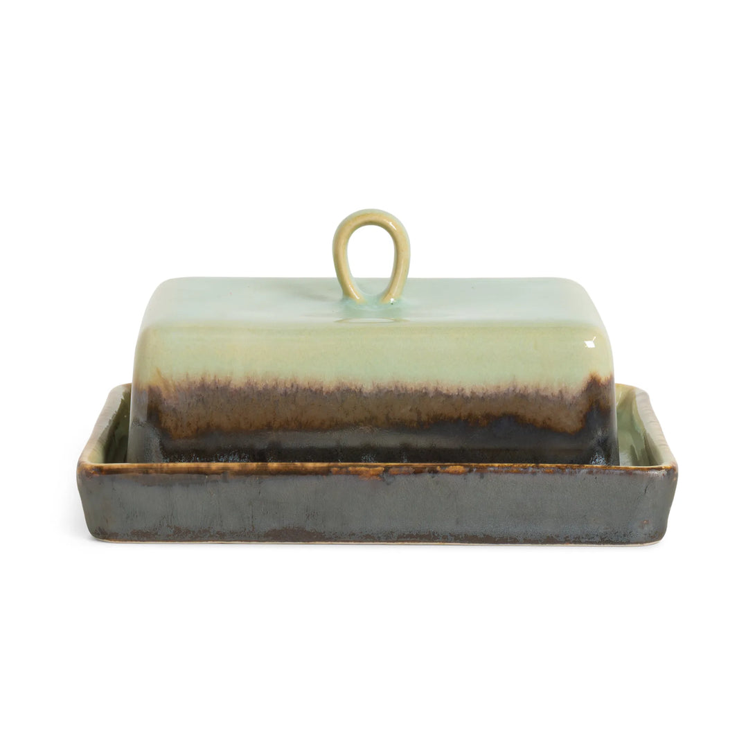 Keep your butter fresh and beautifully presented with our Agate Butter Dish. The rich soft Agate interior adds warmth to your table, while the exterior features a stunning artistic effect where the Agate glaze creates beautiful wave-like transitions flowing over the dark Onyx base.