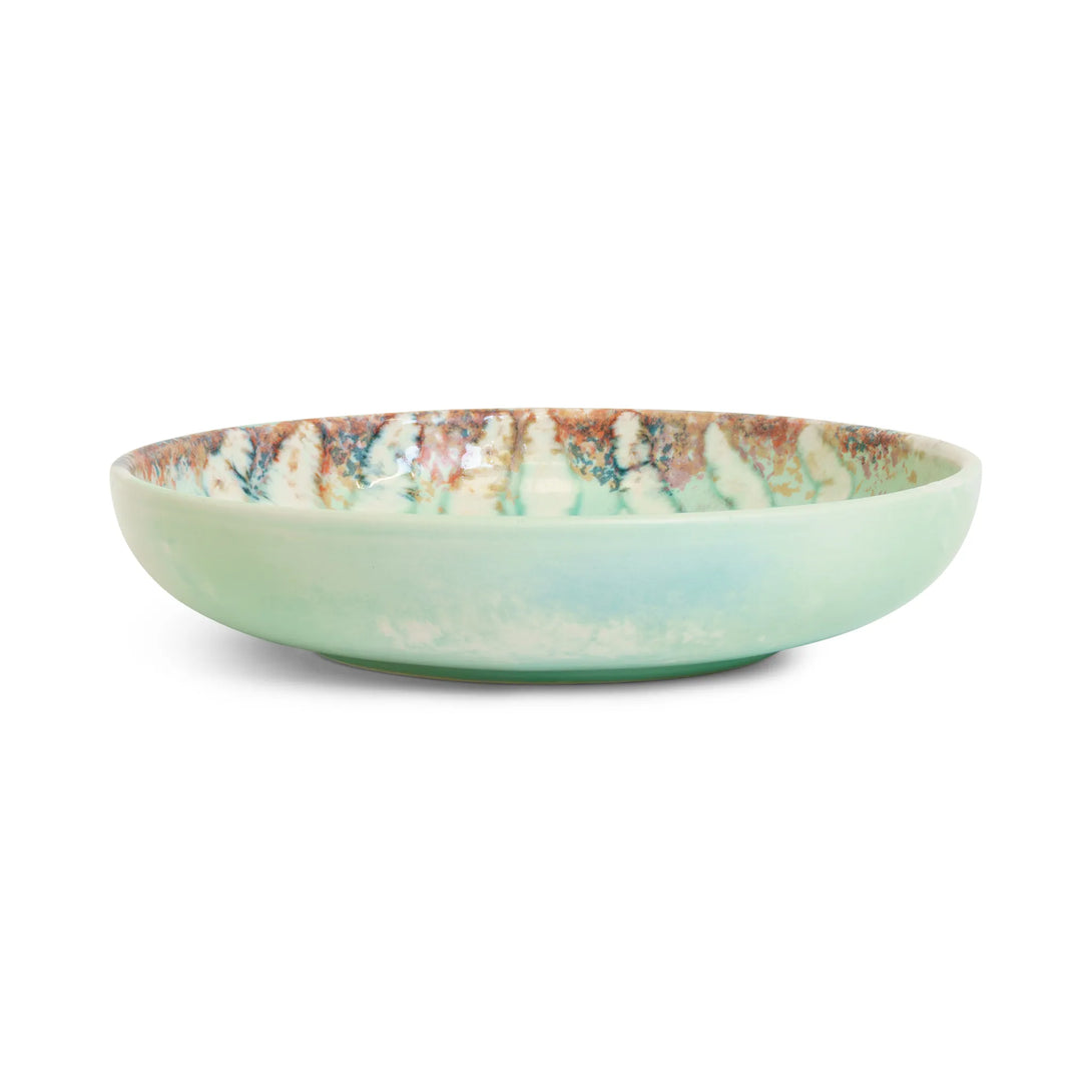 Eye-catching and brightly coloured ceramic tableware, handmade and painted in Spain. This unique and artistic Shallow Bowl is perfect for adding a pop of colour to your dining table. The hand-made and hand-painted design ensures that each piece is one-of-a-kind, making it a great addition to your kitchenware collection.