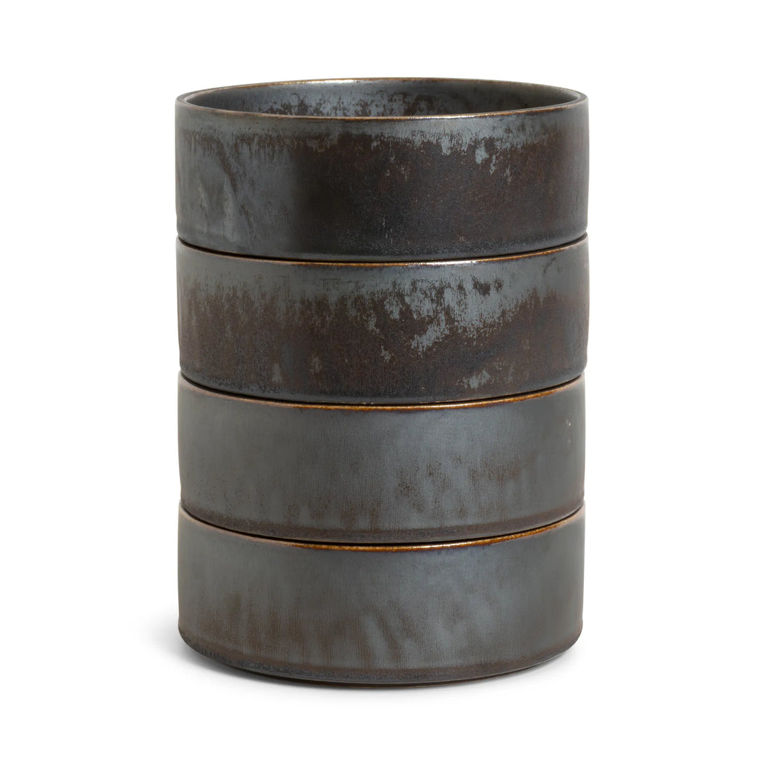 Start your morning with the contemporary elegance of our Set of 4 Onyx Edge Cereal Bowl. This handcrafted stoneware piece features clean, straight walls and a stunning Onyx interior that beautifully contrasts with the sophisticated dark Onyx exterior.