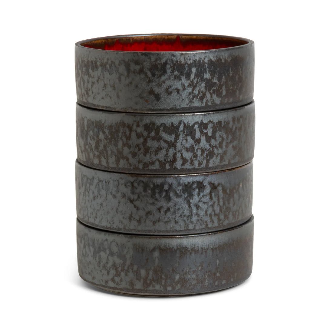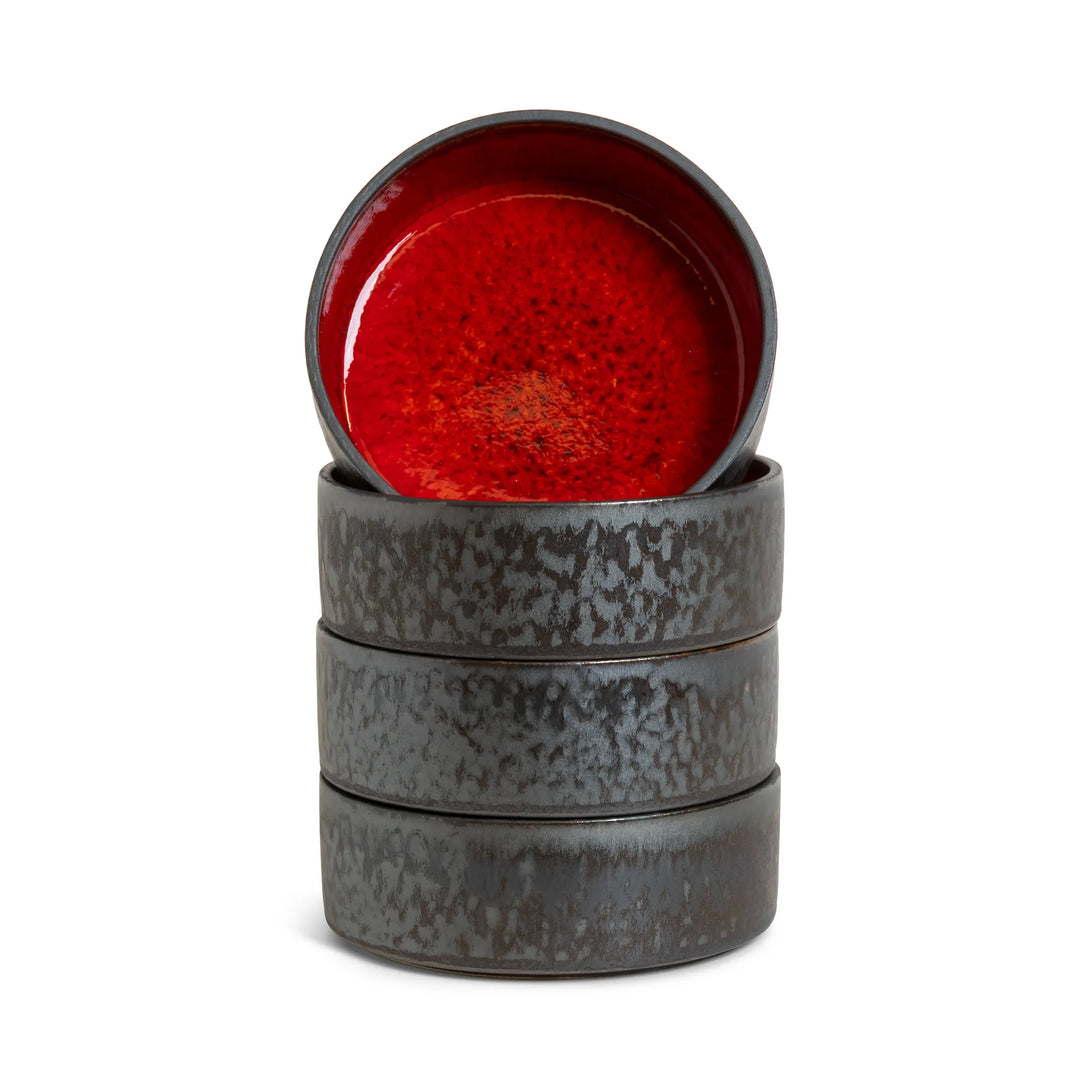 Start your morning with the contemporary elegance of our Set of 4 Ruby Edge Cereal Bowl. This handcrafted stoneware piece features clean, straight walls and a stunning ruby-red interior that beautifully contrasts with the sophisticated dark Onyx exterior.